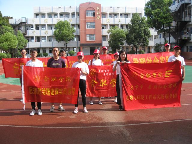 7月10日, 魏亞老師和經濟系鄧秋實老師帶領合肥學院經濟系“三下鄉”團隊一行24位同學,奔赴蕪湖市無為縣蜀山鎮開展為期10天的社會實踐活動。本次“三下鄉”實踐活動通過“中國共產黨黨史宣傳教育”及“中國夢宣傳教育活動”等理論宣講活動,“弘揚中國夢”、“爭做追夢人”、“紅色電影放映”及“防溺水安全教育”等系列支教活動,“保護生態環境”、“倡導文明旅游”及“金融知識三下鄉”等專題系列活動,“留守兒童、農村孤寡空巢老人的生存狀態調研”及有關扶貧調研活動等一系列豐富多彩的活動方案及有效形式的設計,不僅在實踐中堅持貫徹了中央有關當代大學生思想道德和品行意志的培養要求,進一步端正了大學生的價值觀和社會觀,磨練了的意志,奉獻了愛心,同時也幫助同學們提高了獨立思考和分析解決問題的能力。