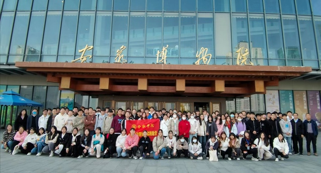 “德法”課教研室開展集中教學實踐活動 2023年11月28日下午,馬克思主義學院思想道德與法治課教研室王能引、王霞、韓道友、劉昆、吳瓊、梁雪玉、羅會必、符琳等八位老師組織帶領23級理科各班級共計103名同學,乘坐3輛大巴到安徽博物院開展集中教學實踐活動,幫助學生了解安徽歷史文化,豐富思想政治理論課的教學形式。