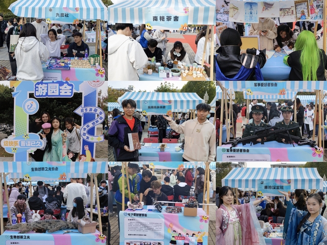 各個社團百花齊放,以自身優勢展現社團風采,吸引同學們的廣泛關注與加入。如W.A.O beat box協會的會員們手拿話筒,表演中西音樂之曲;青衿漢宣社的學生身穿漢服,用青春之姿展現中華優秀傳統文化之美;南艷茶社進行茶藝表演,鬧中取靜,盡顯優雅;模特協會的走秀表演精彩奪目,鐫刻了一場時尚與美的視覺盛宴;晴嵐漫聯社的彈唱表演動人心弦,演繹了一首熱情洋溢的樂章;生物創新之光的標本展覽引人入勝,繪制了一幅幅生動的生物圖畫;構力協會用積木搭建溝通力學的橋梁,展示科學之魅力;讀書協會秉承以書會友的理念,讓同學們沉迷在知識的花海;軍事愛好者協會身著軍裝,向同學們弘揚愛國精神……各種新穎的宣傳方式與精彩的表演交相輝映,令人目不暇接。臺上各類節目輪番上演,異彩紛呈,臺下觀眾掌聲陣陣、歡快互動,歡聲笑語交織其間,共同將活動氛圍推向高潮。