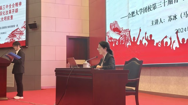 開班儀式后,蘇冰以《學(xué)習(xí)貫徹黨的二十屆三中全會(huì)精神—一進(jìn)一步全面深化改革開辟中國(guó)式現(xiàn)代化光明前景》為題為學(xué)員授課。她深入解讀黨的二十屆三中全會(huì)的精神內(nèi)涵,將歷史與現(xiàn)實(shí)相聯(lián)系,從中國(guó)共產(chǎn)黨的百年發(fā)展歷程中提煉出寶貴的經(jīng)驗(yàn)和智慧,為青年學(xué)生提供了深刻的歷史啟示。蘇冰特別強(qiáng)調(diào)了青年在國(guó)家發(fā)展中的重要角色,她指出,青年是國(guó)家的未來(lái)和民族的希望,應(yīng)當(dāng)肩負(fù)起歷史責(zé)任,勇于創(chuàng)新,敢于擔(dān)當(dāng)。她鼓勵(lì)學(xué)生們要將個(gè)人夢(mèng)想與國(guó)家發(fā)展緊密結(jié)合,以實(shí)際行動(dòng)學(xué)習(xí)貫徹落實(shí)黨的二十屆三中全會(huì)精神,為實(shí)現(xiàn)中國(guó)式現(xiàn)代化貢獻(xiàn)青年智慧和青春力量。