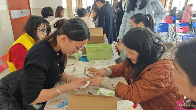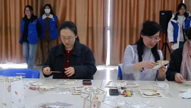 巧手制燈,點亮心意。花燈制作區域同樣熱鬧非凡。在指導老師的帶領下,師生們學習傳統花燈的制作工藝,從骨架搭建到彩紙粘貼,再到裝飾點綴,每一步都凝聚著巧思與心意。一盞盞獨具特色的花燈在手中誕生,既有古典韻味,又充滿現代創意,展現了師生們的藝術才華。