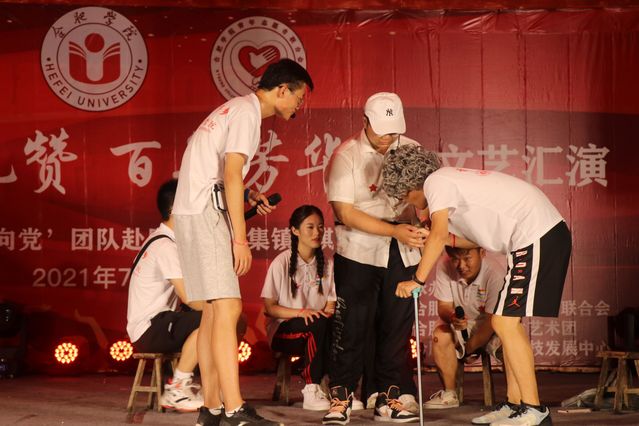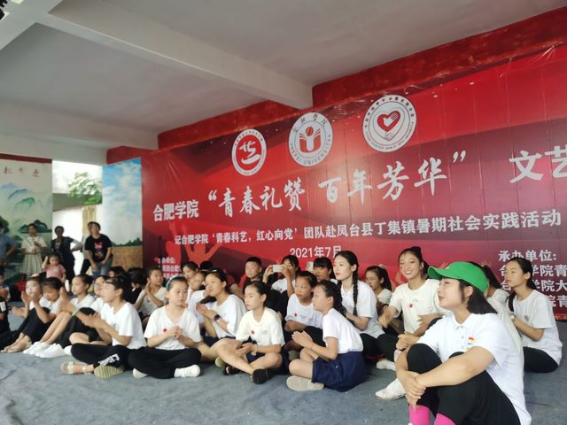 2021年7月19日合肥學(xué)院2021“青春科藝 紅心向黨”理論宣講實(shí)踐團(tuán)的支教組志愿者在丁集鎮(zhèn)中心學(xué)校進(jìn)行黨史文化育人課、紅歌音樂教學(xué)課、形體塑展課等愛心支教活動,其他志愿者們集體前往板張集烈士陵園進(jìn)行宣誓、默哀等儀式;下午全體志愿者來到文藝匯演現(xiàn)場進(jìn)行布置與彩排;晚上合肥學(xué)院“青春禮贊,百年芳華”文藝匯演順利舉辦。