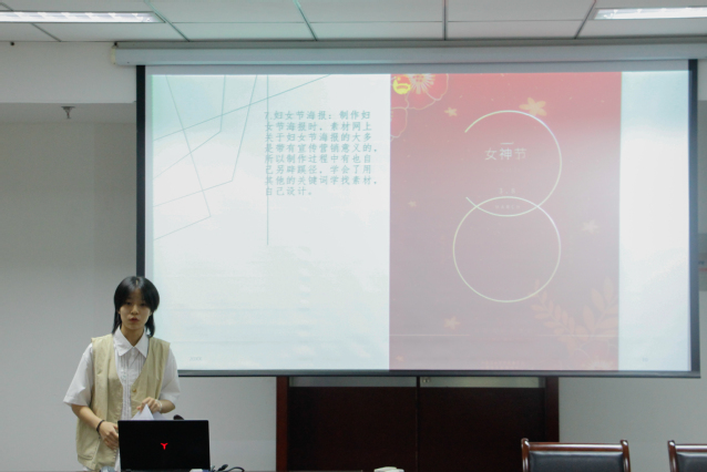 大會期間,南青各部門成員依次上臺進行述職報告。其中,設(shè)計部部長吳心宇介紹了她在設(shè)計部的主要工作是審核委員們所做的平面作品、參與部分作品的直接制作、協(xié)同其他部長管理部門。隨后,她展示了部分作品,如父親節(jié)海報、端午節(jié)海報、中元節(jié)海報等。她表示,在南青的又一年,學會了更多書本上沒有的知識,收獲了更多的友誼。此外,信息部委員王艷簡要回顧了上一年的工作內(nèi)容。她表明,過去一年工作主要是日常運營團團QQ、錄制電臺以及制作校園通知等。緊接著,她講述了自己未來的工作規(guī)劃,表示在未來的日子里會加強對工作的細節(jié)處理,整改有時消極怠工的不良行為。