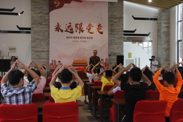 在黨史學(xué)習(xí)課上,志愿者們給小朋友們播放了電影《英雄王二小》片段,引導(dǎo)他們向機(jī)智勇敢、堅(jiān)忍不拔的小英雄學(xué)習(xí)。志愿者們還借助PPT演示,講述發(fā)生在南京、廣州、延安、上海、長(zhǎng)沙、重慶等城市的紅色故事,培養(yǎng)同學(xué)們的愛國(guó)主義精神。7月19日,志愿者們?cè)谛聲r(shí)代文明大講堂組織了一場(chǎng)愛國(guó)主義教育主題講座,主講人為凌安村抗美援越退伍老兵王遺長(zhǎng)。“我名字叫王遺長(zhǎng),今年85歲,1956年工作,1960年8月從黃屯小學(xué)入伍,加入的是海軍航空兵,也就是海軍中的空軍……”棄文從軍,舍家為國(guó),這是王遺長(zhǎng)的愛國(guó)主義情懷。愛國(guó)主義教育活動(dòng)的開展讓小朋友們?cè)谥販貧v史的過程中感受到老兵們的愛國(guó)情懷與堅(jiān)定信仰,引導(dǎo)他們了解到今天的和平幸福來之不易。