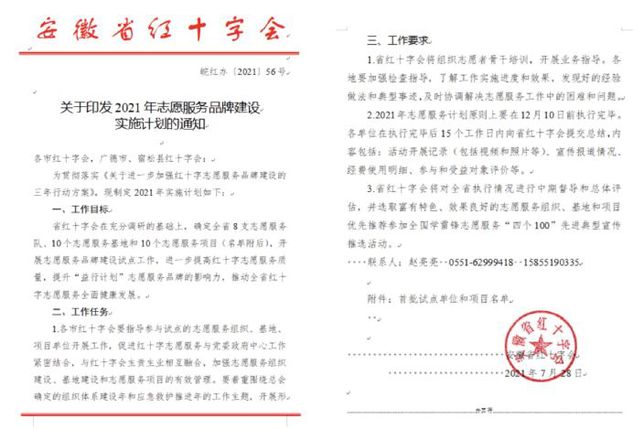 為貫徹落實《關于進一步加強紅十字志愿服務品牌建設的三年行動方案》,安徽省紅十字會制定2021年實施計劃。目的是希望在開展志愿服務品牌建設試點工作的同時,進一步提高紅十字志愿服務品牌的影響力,推動全省紅十字志愿服務全面健康發展。