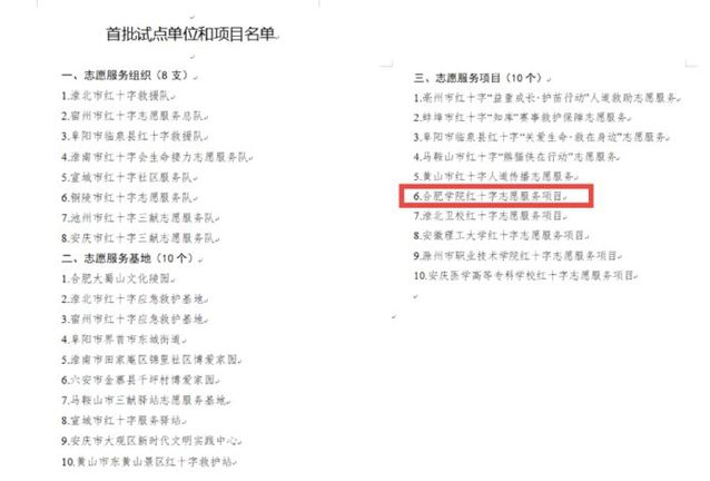 近日,安徽省紅十字會公布了2021年志愿服務品牌建設試點名單,名單包含8支志愿服務隊、10個志愿服務基地和10個志愿服務項目。我校大學生紅十字會志愿服務項目成功入選志愿服務品牌項目。