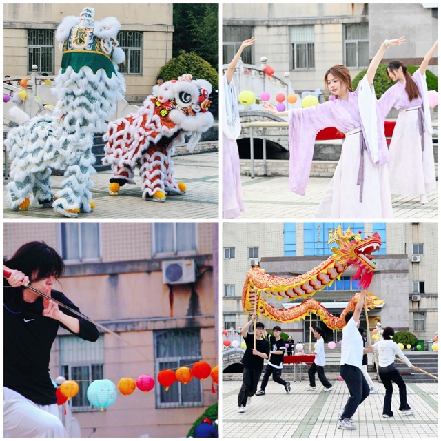 活動現場,五彩斑斕的花燈掛滿了一期校園湖畔的各個角落,吸引了近百名同學駐足欣賞,拍照留念。華裳倩影,翩若驚鴻,身著漢服的舞者跟隨音樂翩翩起舞,威武雄壯的龍獅在舞者的操控下盡顯力量與美感,悠揚動聽的吉他彈唱傳遞著青春與夢想的和諧共鳴。動與靜的結合,構建出一副氣韻生動的中華傳統美學意境圖,使得在場人員皆沉浸其中,在交流互動中切身體會中華優秀傳統文化的魅力。