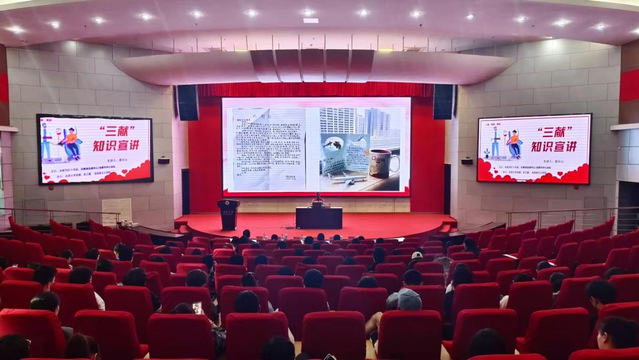 4月18日下午,合肥市紅十字會和安徽省血液中心、合肥市中心血站主辦的“三獻”知識專題講座首場在我校舉辦,合肥市紅十字會特邀我校馬克思主義學院退休教師姜從山作為主講人,向學生講述和分享“三獻”相關知識。合肥市紅十字會事業發展部副部長王雙全,合肥市中心血站無償獻血招募區域主管鄭東、張磊、褚媛,校關工委秘書長劉玉培,團委副書記李妍妍和300余名學生到場聆聽講座。