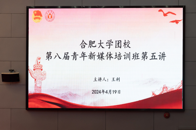 為加強我校新媒體工作建設,4月19日上午,合肥大學團校第八屆青年新媒體培訓班第五次培訓在圖書館報告 A廳順利舉行。本次授課邀請中央廣播電視總臺記者王利主講,校團委掛職副書記王雨濛出席,南艷青年新媒體中心全體成員及其他校級組織、各院學生會、學生社團等成員代表參加。
