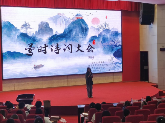 4月21日,合肥大學第一屆鶯時詩詞大會在圖書報告廳A順利舉行。共有六所學校受邀參與比賽,分別是安徽大學的青銅詩社、安徽醫科大學的激流文學社、合肥大學的青月詩文協會、安徽三聯學院的紫藤文學社、安徽藝術學院的蕓窗煮字文學社,以及安徽職業學院的思源文學社。