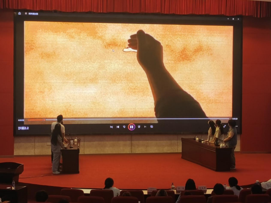 比賽在舞龍舞獅俱樂部同學的精彩表演中拉開帷幕,劉美艷作開場致辭,現場分為團隊賽、個人賽和友誼賽三項賽程。團隊賽中,六支團隊分別派出兩名選手上陣,在激烈的搶答題中,各校選手都展現出了出色的團隊意識和豐富的詩詞儲備。個人賽環節,各選手將按照組號輪流答題,利用有限的時間在九宮格找出隱藏的詩句;隨后是沙畫視頻猜詩句比賽,選手們需要根據所看到的畫面猜出對應詩句,既考察選手們古詩詞記憶背誦的基礎,也檢視選手們對古詩詞的理解和感悟。