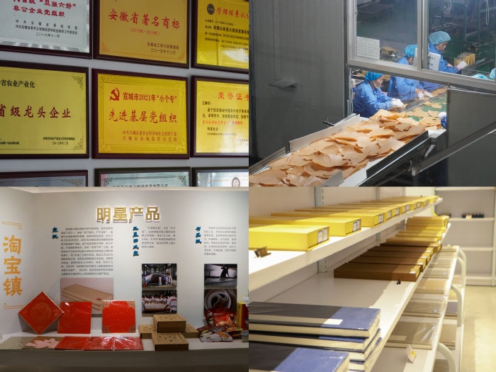 團隊成員們走訪了云嶺鍋巴、李園村、宣紙產(chǎn)業(yè)園等地,它們以獨特的方式,走出了一條條“致富路”。云嶺鍋巴改良加工方式,為滿足多樣化的市場需求而制作多種口味的鍋巴。李園村把握時代機遇,利用互聯(lián)網(wǎng)將宣紙等產(chǎn)品銷往全國各地。在宣紙產(chǎn)業(yè)園內(nèi),團隊成員們近距離觀看了宣紙、宣筆、徽墨等制作過程。“傳統(tǒng)產(chǎn)業(yè)與現(xiàn)代科技相融合”已經(jīng)成為當?shù)仄髽I(yè)的創(chuàng)業(yè)秘訣。