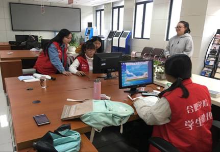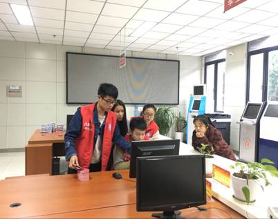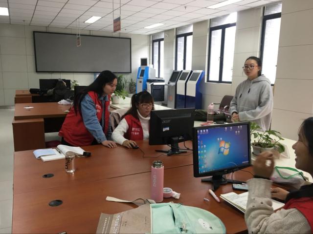 (圖為大學生事務中心學生助理為同學辦理火車磁條信息錄入業(yè)務)