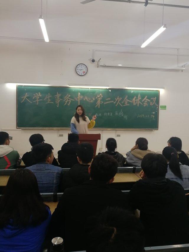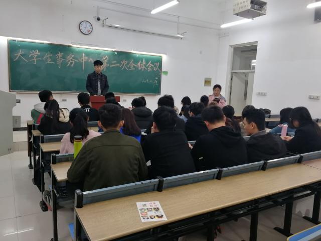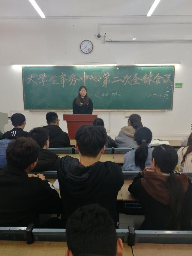 3月24日晚上七點,在三十五棟教學樓206召開了大學生事務中心第二次全體大會,會議由屈立端主持,大學生事務中心全體學生助理參加此次大會。