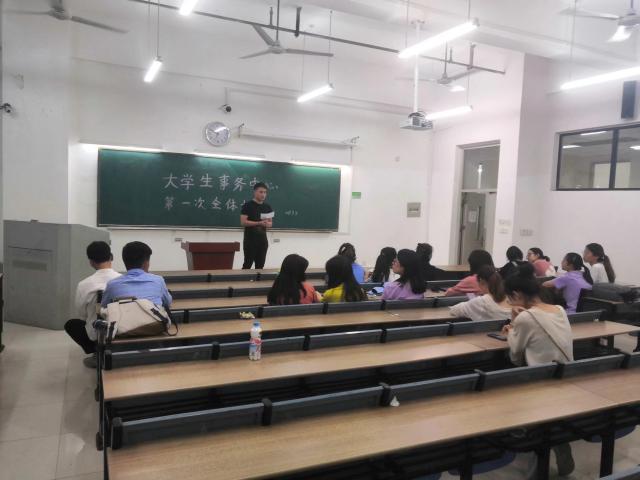 2019年9月5日六點半在35棟201舉辦了大學生事務中心新學期的第一次全體大會,會議由負責人孫亮亮同學主持,全體大學生事務中心學生助理參加此次會議。