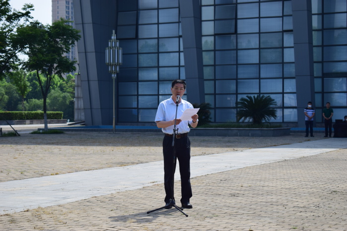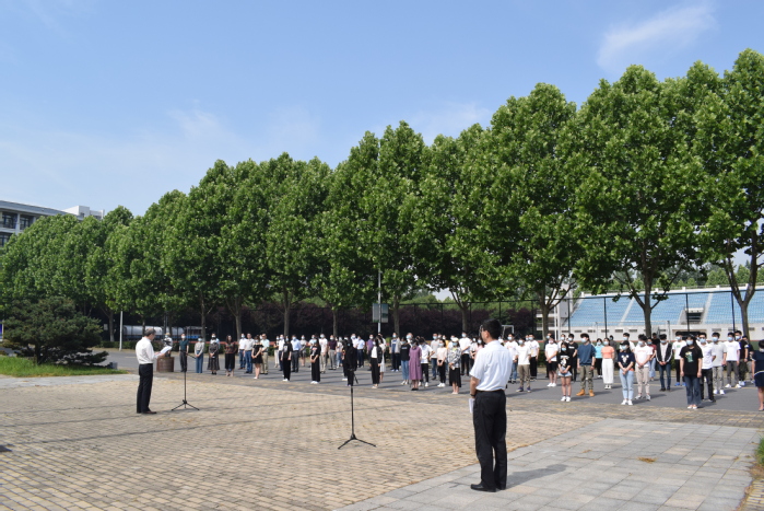 為進(jìn)一步做好大學(xué)生思想政治教育工作,切實(shí)把全民共同抗擊疫情作為推進(jìn)學(xué)校思想政治教育的重要實(shí)踐和生動(dòng)教材,激發(fā)廣大師生愛國愛黨的奮斗精神和家國情懷,5月21日上午,我校于體育館西側(cè)舉行2020年春季學(xué)期學(xué)生返校后首次升旗儀式,并由校黨委書記王其東講授“返校第一課”。各部門負(fù)責(zé)人、各學(xué)院黨政領(lǐng)導(dǎo)、教師代表、50余名返校學(xué)生代表參加了此次活動(dòng),黨委副書記劉建中主持儀式。