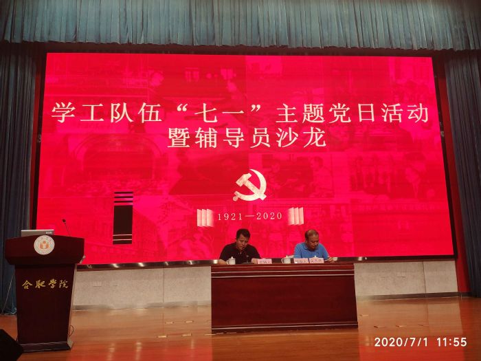 7月1日上午,合肥學院學工隊伍“七一”主題黨日活動暨第11期輔導員沙龍在圖書館報告廳A廳舉行,此次活動旨在慶祝中國共產黨成立99周年,深入學習貫徹習近平新時代中國特色社會主義思想,全面貫徹落實全國高校思想政治工作會議精神,認真學習“最美逆行者”的崇高精神,為打贏疫情防控人民戰爭、總體戰、阻擊戰提供強大精神動力,持續推進我校輔導員隊伍建設。我校全體專職輔導員、黨委學生工作部全體工作人員80余人參加,活動由黨委學生工作部副部長、學生處副處長許剛主持。