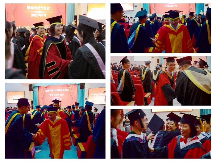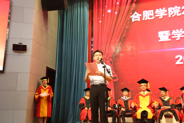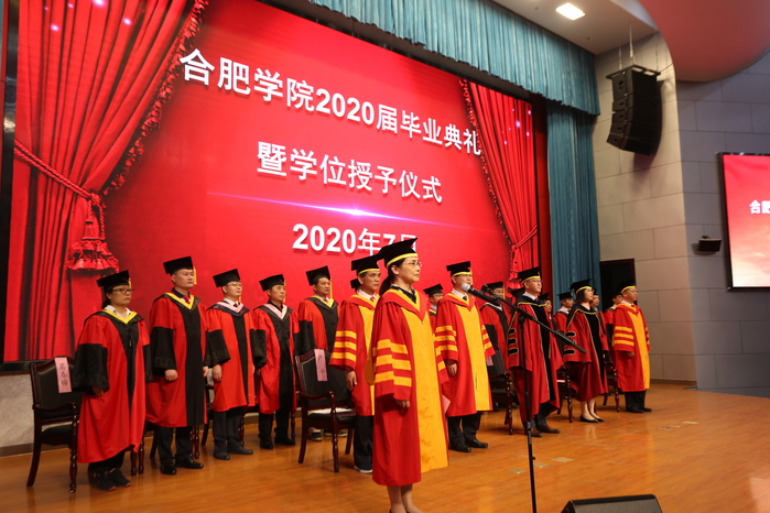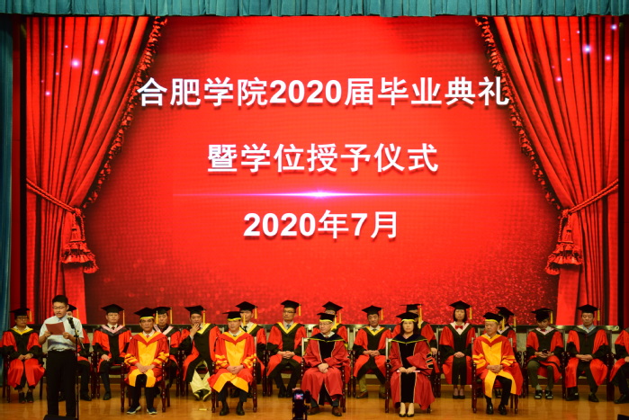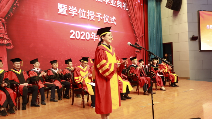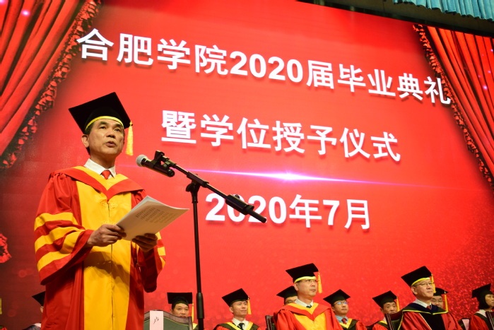 校長、校學位評定委員會主席吳春梅教授代表學校對同學們順利完成學業表示熱烈祝賀,在給2020屆畢業生的寄語中,她談到:“四年的時光,轉瞬即逝。四年來,我們共同努力,一起發展成長。我們共同見證了學校進入本科第一批次招生,獲得碩士學位授予權,被教育部列入‘十三五’更名大學規劃中期調整計劃,我們離合肥大學夢越來越近了……今年,面對突如其來的新冠肺炎疫情,全校師生挺身而出,奮戰在抗疫一線,大家在抗擊新冠肺炎疫情的嚴峻斗爭中經受了磨煉。希望同學們牢記習近平總書記的殷切期望,不畏艱難險阻,勇擔時代使命,把個人的理想追求融入黨和國家的事業之中,為黨、為祖國、為人民多作貢獻,在擔當中成長。”同時,她還勉勵同學們進一步提高對創新和創新思維的認識,在創新發展中大展身手;以我校創始人楊承宗先生為榜樣,繼承先輩無私奉獻、教育報國的精神,在奉獻社會中提升自己的人生價值。離別之際,吳春梅深情祝福同學們展翅高飛,前程似錦。
