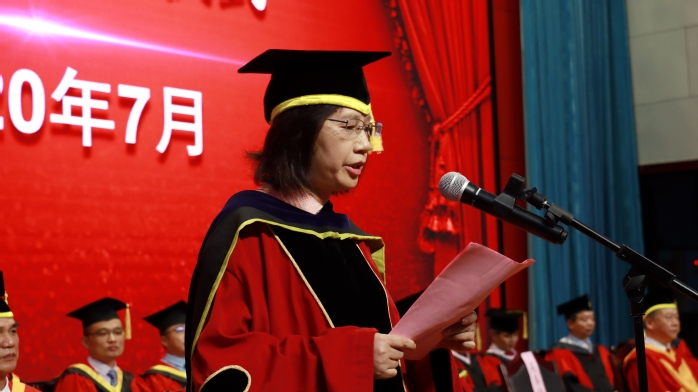 盛夏花開,驪歌淺唱。7月9日下午,我校2020屆本科生畢業典禮在圖書館A館報告廳舉行,校易班平臺線上同步直播。校領導、校學位評定委員會全體成員,2020屆畢業生代表,院職能部門負責人,各學院班子成員、教師代表共同參加典禮,典禮由副校長、校學位評定委員會副主席陳秀教授主持。