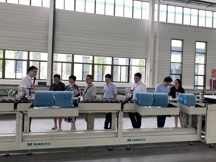 我校一行人先后參觀了公司在智能檢測(cè)分選設(shè)備、智能化倉(cāng)儲(chǔ)系統(tǒng)、工業(yè)機(jī)器人等產(chǎn)品的生產(chǎn)制造及設(shè)備的現(xiàn)場(chǎng)演示,并認(rèn)真聽取了公司自成立以來(lái)的發(fā)展歷程、市場(chǎng)銷售情況以及科技研發(fā)等方面情況。