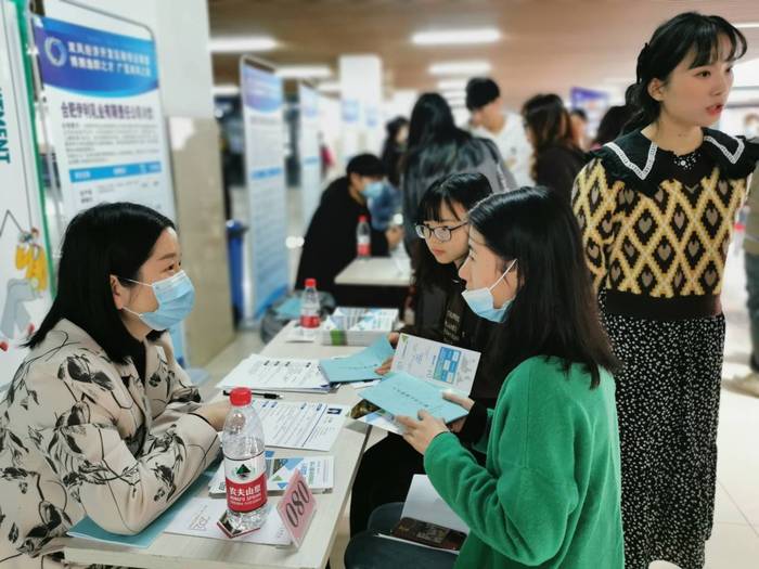 招聘會現場,畢業生手持簡歷有序進入會場,就工作內容、發展空間、薪資待遇等問題向招聘單位進行咨詢。校就業指導中心還在招聘會當天下午為有面試、筆試需求的單位安排了專門的教室,全程做好校園招聘服務工作。