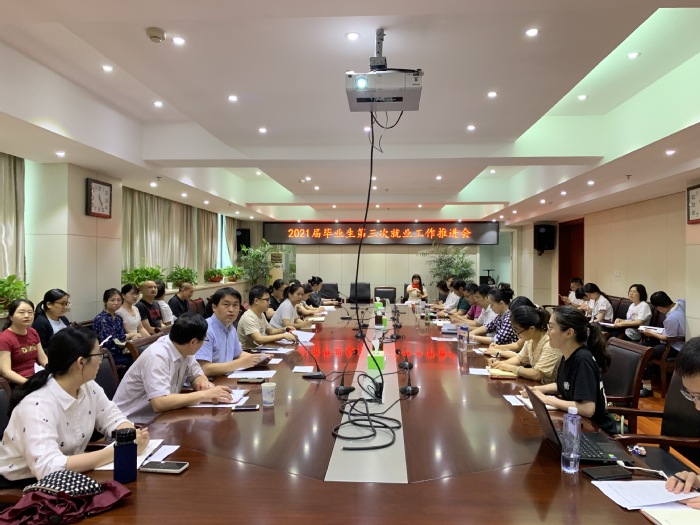 6月3日下午,教育部2021屆高校畢業生就業工作第三次調度視頻會召開。我校組織各二級學院黨委副書記、學工辦負責人、就業工作聯絡員、畢業班輔導員、專業班主任在行政樓九樓西會議室參加了會議。