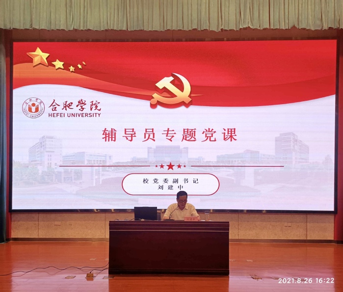劉建中為全體輔導員上專題黨課,他強調各職能部門和二級學院要將開展黨史學習教育與當前的學生工作重點相結合,進一步強化認識、提升站位、提高水平,肩負起歷史使命。要始終牢記教育的首要問題,牢記學校的立身之本,明確黨是領導教育事業發展的核心力量,是辦好中國教育的最大政治優勢,必須把培養社會主義建設者和接班人作為根本任務,培養一代又一代擁護中國共產黨領導和我國社會主義制度,立志為中國特色社會主義奮斗終身的有用人才。