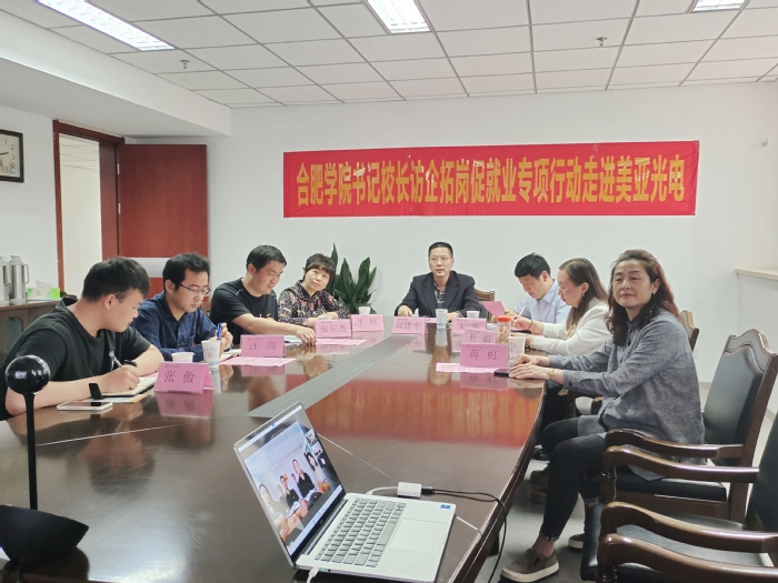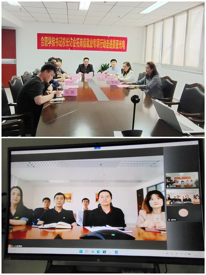 為扎實開展我校書記校長訪企拓崗促就業專項行動,進一步推進畢業生就業工作,4月27日下午,學校在行政樓七樓會議室與合肥美亞光電技術股份有限公司聯合舉辦了“訪企拓崗”視頻交流會。校黨委副書記劉建中出席會議,學生處、校就業指導中心及先進制造工程學院、人工智能與大數據學院相關負責人參加會議。會議由校黨委委員、黨委學生工作部部長朱濤主持。