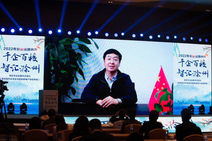 本次活動開始,滁州市委常委、市委秘書長、智能家電產業鏈鏈長楊甫祥,滁州經開區黨工委書記、管委會主任、智能家電產業鏈副鏈長吳孝水分別致歡迎辭,介紹了本次招聘會的相關情況。滁州經開區投資合作促進局副局長馬謝軍作園區及智能家電產業鏈推介。我校和安徽大學作為特邀高校參與了活動。