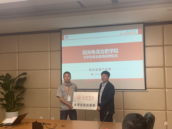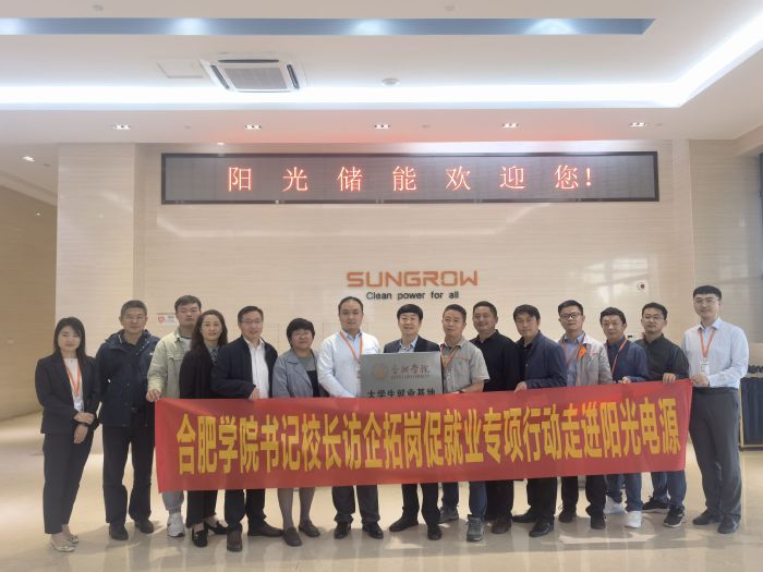 為扎實推進我校訪企拓崗促就業專項行動,穩步推進我校畢業生就業工作,增強就業工作實效,5月12日下午,校黨委委員、黨委學生工作部部長朱濤一行赴陽光電源公司實地走訪調研并舉行大學生就業基地授牌儀式。校就業指導中心、先進制造工程學院、人工智能與大數據學院、經濟管理學院、外國語學院相關領導老師參加了活動。