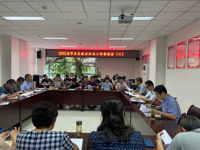 會上,朱濤首先總結了在全校各二級學院、各職能部門通力協作下取得的各項就業工作成效,然后詳細介紹了8月底之前在全校集中開展離校未就業畢業生服務攻堅行動和征兵工作沖刺月專項行動的相關要求,通過不斷檔不斷線的針對性就業服務,進一步促進2022屆畢業生就業和征兵工作。一方面,繼續做好未就業畢業生的跟蹤服務工作,特別是抓好五類特殊群體就業幫扶兜底工作,同時繼續組織開展“校長書記訪企拓崗促就業”專項行動,動態調整就業工作臺賬,進一步做好畢業生就業數據的統計和核查工作。另一方面,結合上半年我校征兵任務完成情況,他詳細介紹了近期征兵工作進行全面再宣傳、再動員、再摸排,全面建好征兵動員工作臺賬,把省里出臺的利好舉措和優惠政策告知每一名畢業生,真正做到應報盡報,應征盡征。