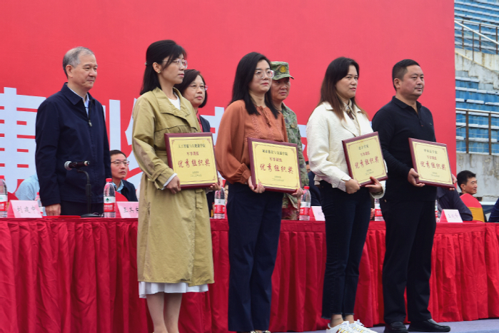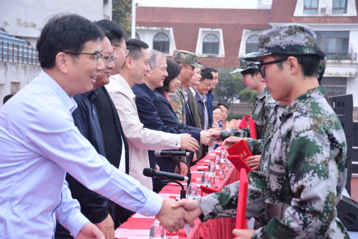劉建中宣讀了2023級本科生軍事訓(xùn)練表彰文件,與會領(lǐng)導(dǎo)為軍訓(xùn)先進(jìn)集體和先進(jìn)個人代表依次頒獎。王其東表示,參與軍訓(xùn)的2600余名新生,刻苦努力、堅(jiān)持訓(xùn)練,接受了入學(xué)后第一次身體上的錘煉和意志上的考驗(yàn),互幫互助、共同進(jìn)步,以集體為榮、以班級為榮,邁出了大學(xué)生活的第一步,共有4個二級學(xué)院獲“軍事訓(xùn)練優(yōu)秀組織獎”,260名同學(xué)獲得“軍事訓(xùn)練先進(jìn)個人”稱號。希望在未來的四年大學(xué)生活中,同學(xué)們能繼續(xù)保持軍訓(xùn)時的優(yōu)良傳統(tǒng),加強(qiáng)體育鍛煉、努力學(xué)習(xí)、快樂生活,圓滿完成大學(xué)學(xué)業(yè)。