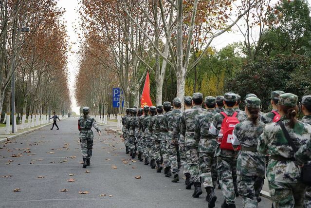上午7時,全體隊員集合完畢,隊伍整裝待發。清晨陽光正好,國旗和隊旗熠熠閃光。一路上行進隊伍步履鏗鏘、歌聲嘹亮,展現出當代大學生的青春激昂與積極向上。數小時長途跋涉后順利抵達渡江戰役紀念館。這一過程讓大家堅信前路漫漫,也有盡頭,終點再遠,也會抵達。拉練活動不僅夯實了參訓隊員的身體素質,也切實加強了組織的凝聚力和向心力。