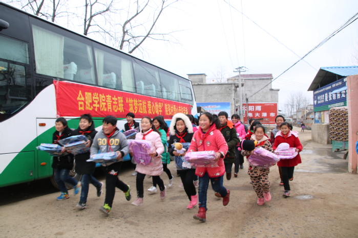 從2015年開始,學校持續開展“筑夢遠航”結對關愛貧困學生活動,各類捐贈物資每年平均達到6萬多元。每年雷鋒月期間,學校組織社區黨員和學生志愿者到村開展志愿服務,走訪慰問貧困學生,送上募捐物資。先后選派10余支團隊近500名大學生到村,開展包括科普知識宣傳、總書記講話精神宣講、留守兒童夏令營、扶貧調研和貧困戶慰問等志愿活動,志愿服務活動幫扶效果顯著,惠及貧困留守兒童千余名,已經成為合肥學院品牌幫扶活動。為結合地方引智戰略需要,2019年學校與泗縣組織部聯系,選派10名優秀大學生到縣里開展政務實習活動,促進學校與地方的產學研聯系。2019年,《筑夢遠航  助心飛翔——合肥學院關愛泗縣貧困留守兒童項目》經驗材料被省教育廳推選到教育部網站,作為全國扶貧日專題經驗分享。