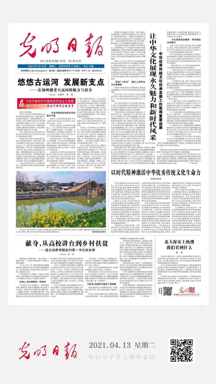 2021年4月13日,《光明日報》頭版報道我校駐泗縣陡張村第一書記朱世群的事跡,現將全文轉載如下: