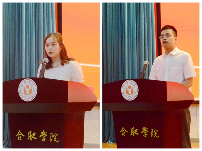 語言文化與傳媒學院學生顧子菡和先進制造工程學院教師王慧然分別作為學生代表和教師代表上臺發言。