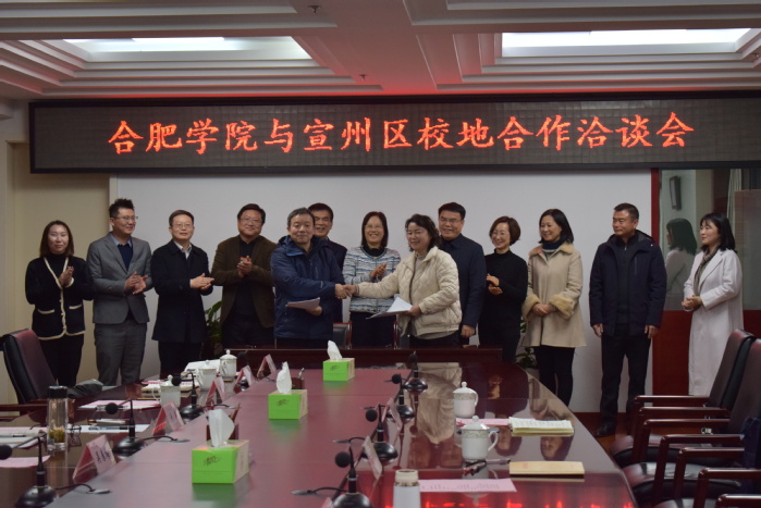 12月30日,宣州區委書記汪侃一行訪問我校,洽談宣州區與合肥學院的校地合作事宜。校長吳春梅、副校長盧平出席,黨委宣傳部、科研處、旅游與會展學院負責同志及相關教師參加。