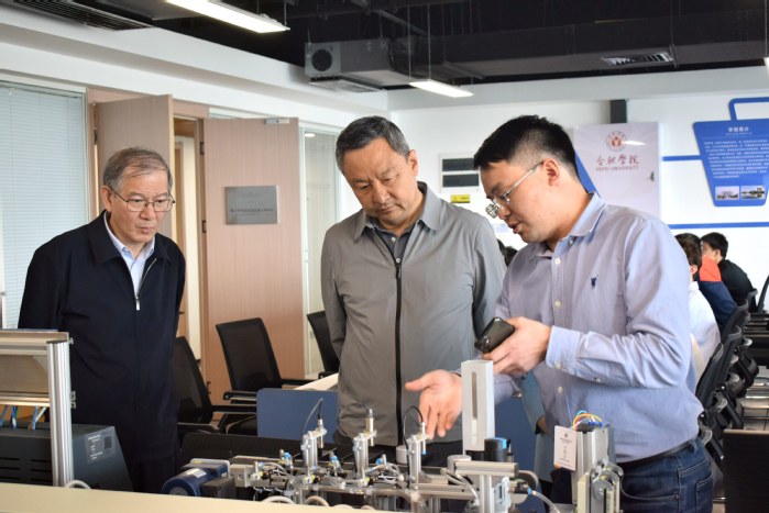 吳俊清一行還來(lái)到了中德教育合作示范基地,實(shí)地考察了大眾學(xué)院,聽(tīng)取了相關(guān)負(fù)責(zé)人關(guān)于大眾學(xué)院基本情況、人才培養(yǎng)機(jī)制、國(guó)際交流合作和產(chǎn)學(xué)研合作、建設(shè)成效等情況的匯報(bào),參觀了智能制造產(chǎn)教融合實(shí)踐中心、數(shù)字孿生技術(shù)及應(yīng)用工程中心等實(shí)驗(yàn)室,深入了解學(xué)生科研學(xué)習(xí)及產(chǎn)教融合項(xiàng)目開(kāi)展情況。吳俊清指出,大眾學(xué)院要充分發(fā)揮自身優(yōu)勢(shì),在應(yīng)用型人才培養(yǎng)方面做出更多的探索,進(jìn)一步提高應(yīng)用型人才培養(yǎng)質(zhì)量。