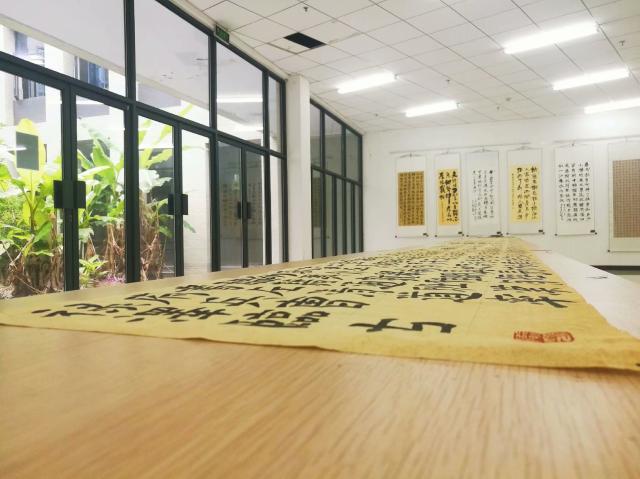 本次展覽將持續到6月8日。參展的美術作品有寫意山水、寫意花鳥作品,也有工筆山水、花鳥作品;書法作品有篆、隸、楷、行、草等,條幅、對聯、斗方、中堂、橫幅等形式俱備;攝影作品有校園風光、人物寫真等形式。作品集中展現了校園五月的生機和活力、寧靜與和諧。師生日常工作學習中的樓宇、湖泊亦或者是路邊的綠樹,都成為了大家創作的素材