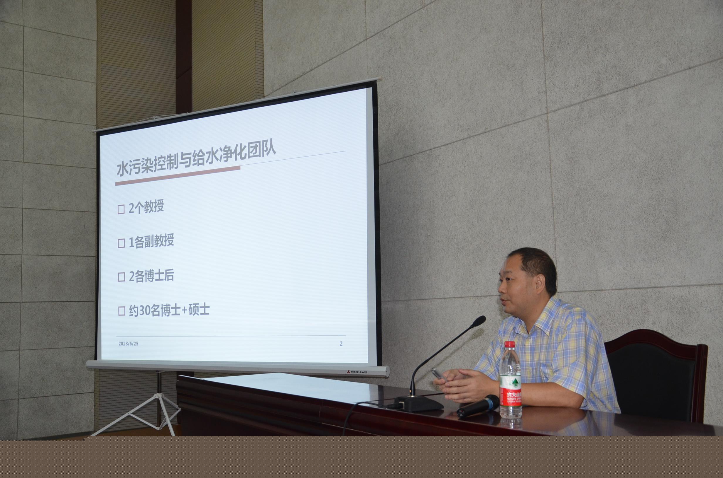 報告會上,胡勇有教授從三個方面系統介紹了“污泥減量技術研究”課題以及取得的成果。胡勇有教授首先介紹了污泥減量研究的目的與意義,通過污水投資與污泥投資的對比差距,在污水處理的同時實現污泥減量具有重大意義。胡勇有教授重點分析了研究思路、研究過程中可能存在的問題以及具體的研究方向,并詳細闡述了三個研究階段的研究內容與技術路線以及取得的成果。最后,胡勇有教授表達了工作展望,希望在尾水提標和低耗方面做進一步研究,實現“污泥減量技術研究”的新發展。報告生動、縝密、前沿,給在場的師生很大觸動。