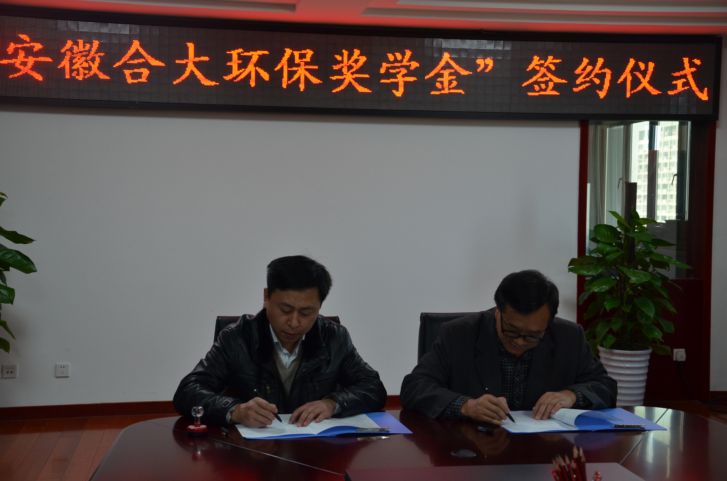 丁明副院長(zhǎng)代表學(xué)校與安徽合大環(huán)境檢測(cè)有限公司總經(jīng)理韓蔚簽約