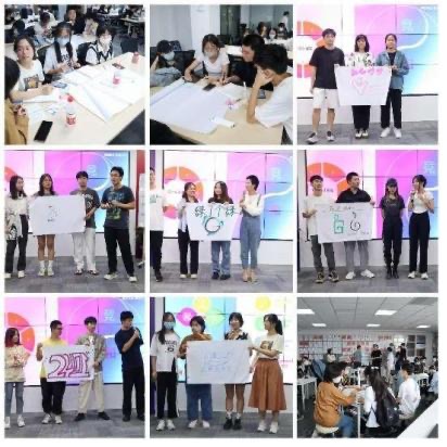 首先,創新設計中心設計總監王文東發布課題并對課題解讀給予啟發;然后以開盲盒方式隨機分組,同學們通過抽取卡片并尋找團隊三位同學組合成一副完整圖形完成組隊;接下來,小組成員相關溝通了解,推選組長,并設計本組的Logo和Slogan;最后,各組一一上臺介紹本組特點、選擇設計課題,并與企業導師互動。