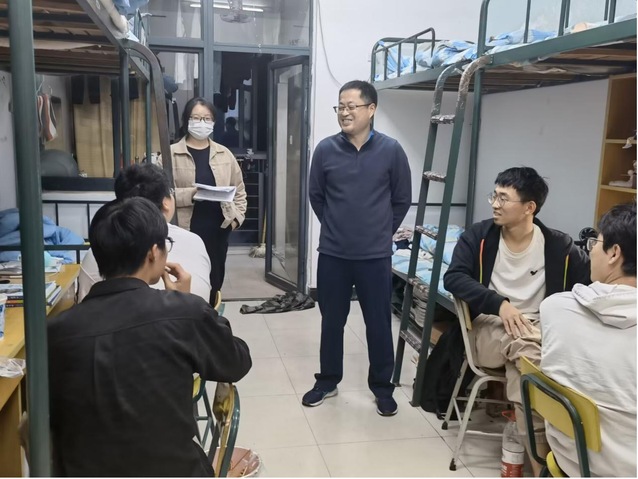 走訪過程中,院領導及老師詳細詢問學生近期線上課程學習、生活保障等方面存在的問題,解答學生心中疑難困惑,傳達當前疫情防控政策要求,并要求學生及時完成每日核酸檢測、晨午晚檢打卡等相關要求。特別強調疫情防控相對封校期間同學們一要提高自我要求,認真對待線上課程的學習,按時按質完成學習任務。二要做好寢室每日值日制度,多通風,多打掃,不使用違禁電器,共同維護宿舍安全衛生。三要學會自我心理調整,多運動多交流,舒緩心理壓力,打造健康體魄與健康心理。