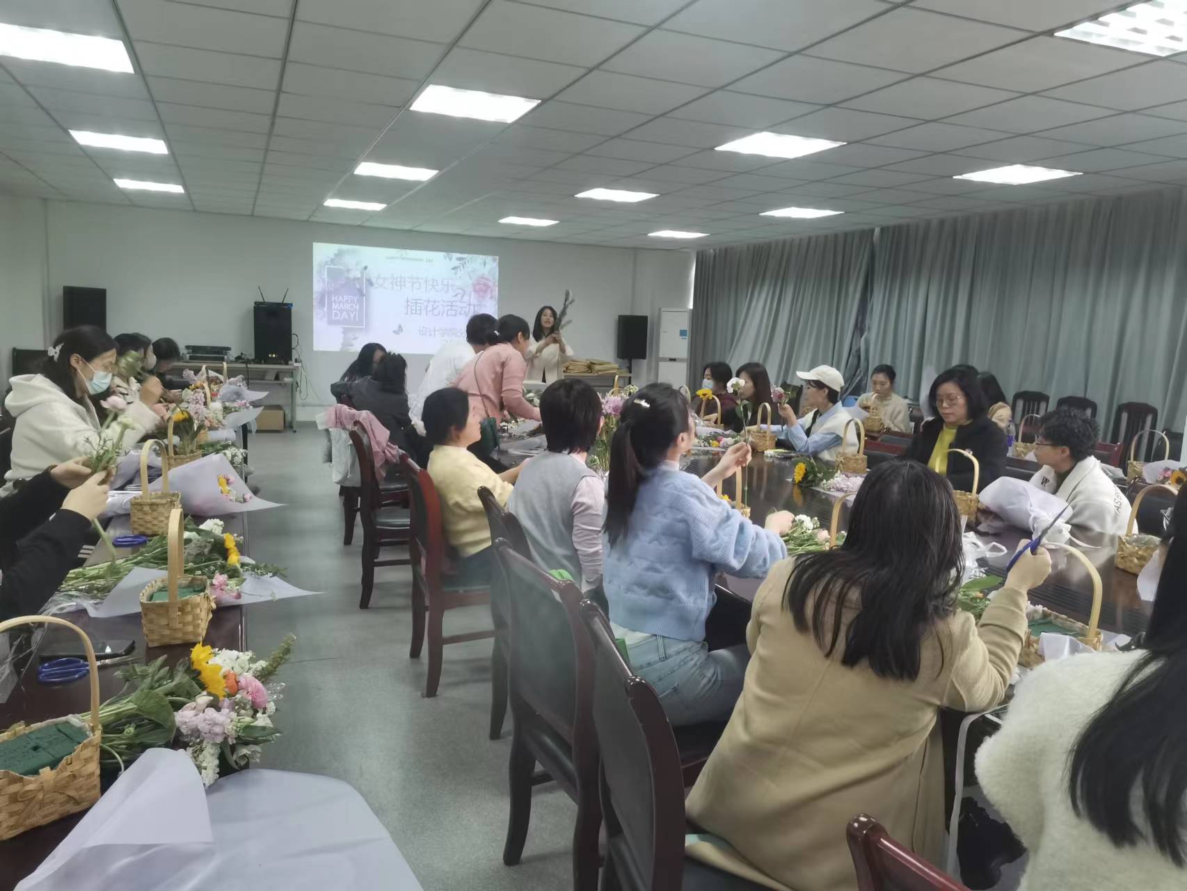 陽春三月,萬物盎然。為豐富設計學院女教職工的精神和業余生活,值此“三八”國際勞動婦女節來臨之際,設計學院分工會于314日下午在39-305舉辦了三八婦女節插花活動讓女教職工度過一個愉快、有意義的節日。