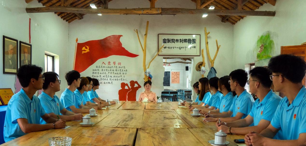 早上八點四十,吳老師在駐地的鄉建學院為暑期“三下鄉”隊員開展以“助力鄉村振興,貢獻青春力量”為主題的第二次團課教育活動。吳老師帶領我們集中學習了二十大報告中關于青年工作的論述,指出黨對青年一代寄予殷切期望,我們要深刻把握黨的二十大精神的核心要義和豐富內涵,切實當好黨的忠實助手和可靠后備軍,把忠誠核心作為共青團最鮮明的政治品格,把理想信念作為共青團最鮮亮的政治底色。吳老師希望大家作為當代新青年,一定要發揮黨的優良傳統,提升時代責任感,始終圍繞在黨中央的領導下,繼承優良傳統,自覺按照黨指引的方向健康成長,踐行“請黨放心,強國有我”的青春誓言,牢記黨和人民的重托,履行新時代、新階段青年大學生肩負的歷史使命。這次我們設計學院暑期三下鄉社會實踐活動,要緊密結合廣德市邱村鎮發展要求,用我們所學的專業技術,切實推進邱村鎮的美麗鄉村建設,促進農民增收。會議第二項,吳老師帶領三下鄉隊員們共同重溫入黨誓詞,全體隊員合影留念。