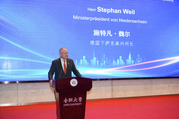 德國下薩克森州州長施特凡·魏爾在致辭中表示,中國和德國、安徽省和下薩克森州、合肥市和奧斯納布呂克市的關系是數十載深耕的友情。雙方在學術、教育、科研領域的合作碩果累累,伴隨著學校的發展雙方的關系更加緊密,友情更加深厚。現在的合肥大學在德國人眼中代表著與實踐緊密結合的應用型高等教育,這正是幾十年長期合作的結果。
