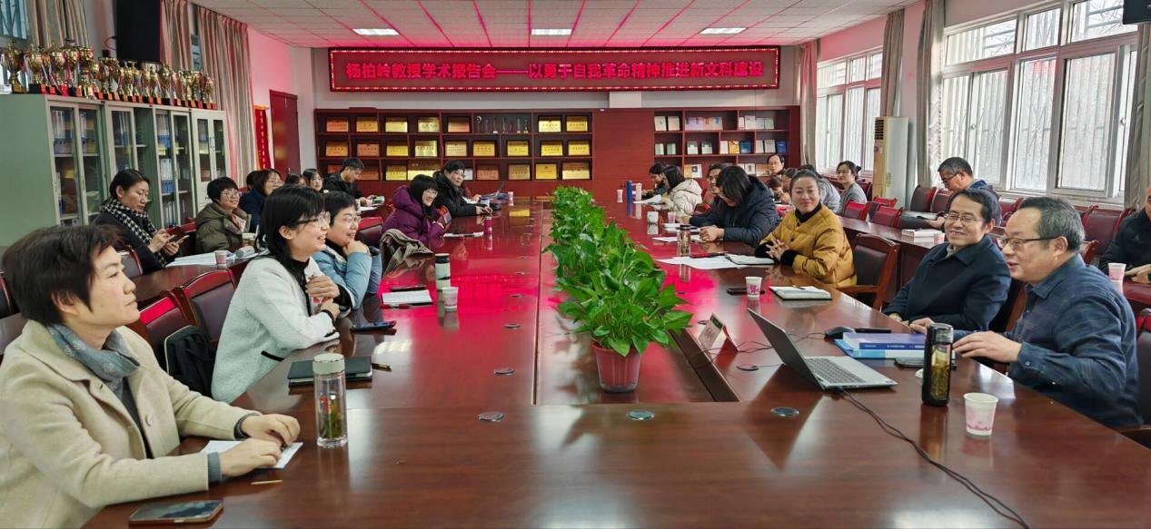12月24日下午,由合肥大學科研處、語言文化與傳媒學院主辦,合肥大學科協、合肥大學社科聯協辦的南艷湖大講堂學術報告在一期5棟二樓會議室順利舉行。本次報告特邀安徽師范大學文學院二級教授、博士生導師、安徽省學術和技術帶頭人楊柏嶺教授主講,題為“以勇于自我革命精神推進新文科建設”。語言文化與傳媒學院院長丁增武、副院長查金萍、副院長殷明明等50余名師生參加。