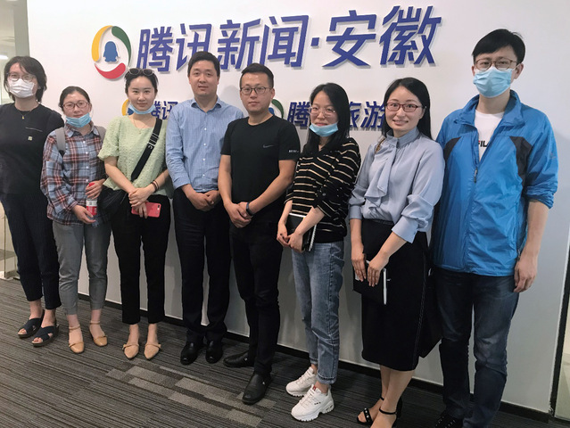 5月19日下午,語言文化與傳媒學院院長丁增武、副院長楊慶國帶領新聞與數字傳媒系教師王冠、唐元、郭靜、張冰清、王書川等赴萬家熱線和騰訊安徽兩家新媒體公司進行行業調研,了解網絡新媒體行業人才需求,為學院“網絡與新媒體”新專業申報做準備。