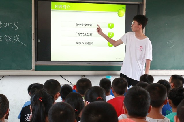8月17日,文傳學(xué)院筑夢(mèng)者愛(ài)心支教團(tuán)隊(duì)在多媒體教室開(kāi)展了安全教育講座,此次講座由志愿者楊家琦主講,全體參與教學(xué)活動(dòng)的孩子到場(chǎng)聽(tīng)講。