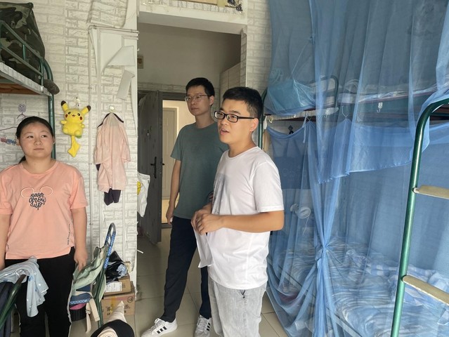 本次寢室走訪活動主要是為了及時了解學生的生活狀態。每走進一個寢室,老師都會仔細查看學生寢室設施,并把存在問題的寢室拍照紀錄下來。老師們表示大家有問題可以及時向院系反應,院系的領導老師會幫助大家解決難題。他們親切的與學生交談,詢問學生學習和生活等情況,并提醒同學們在平常的生活中,務必注意財物安全、用電安全和人身安全,同時叮囑其保持宿舍衛生、加強內務整理。